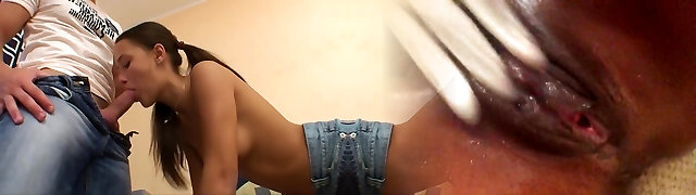 可爱的青少年Vika Lita Deepthroats和Rails粉红色雪茄