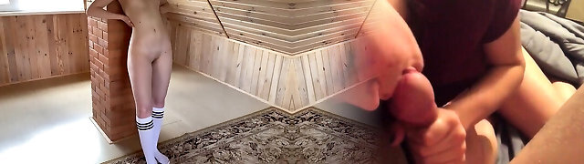 瘦瘦的俄罗斯男人从两个超级火辣的少女那里得到了双重的口交乐趣
