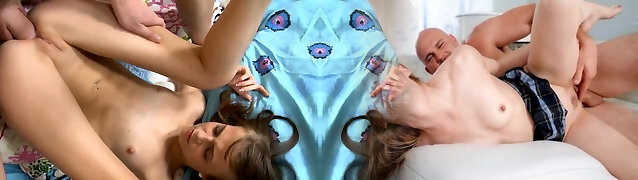 Cuckqueen手表娇小的继女性交和复盖着精子