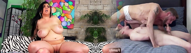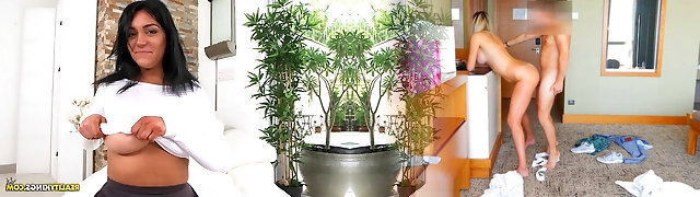 配偶小睡,而巨大的乳房拉丁娃娃被撞