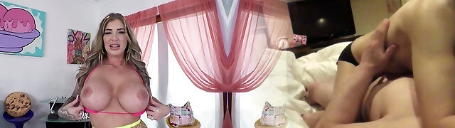 巨大的胸部towheaded Gabbie卡特不能停止spunking上homie的棒棒糖
