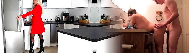 Towheaded cougar Holly bj是一个巨大的意大利腊肠,喜欢它在她的深处移动的方式