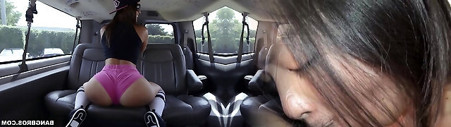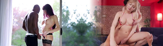 苛刻的双种族dicking与一个黑头发的女孩穿着紧身衣