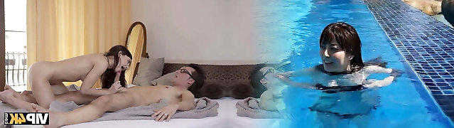 天堂般的平胸亚洲青少年妓女麦莉别墅具有一个多种族的喜悦