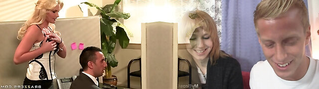 巨大的胸脯成熟的黑发纳迪亚白在办公室的桌子上猛击
