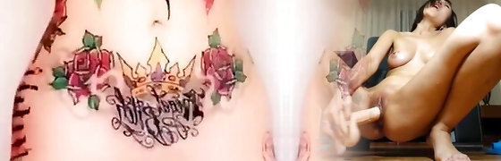 独奏角质Darsi魔鬼与纹身的身体嬉戏与巨大的假阳具在4k。