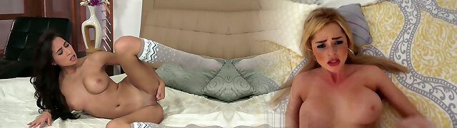 诱人的白金金发和一个超级淘气的黑头发正在脱光衣服