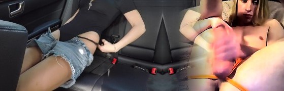 火辣的女孩手淫在汽车的后座上,并没有被抓住-迷你天后