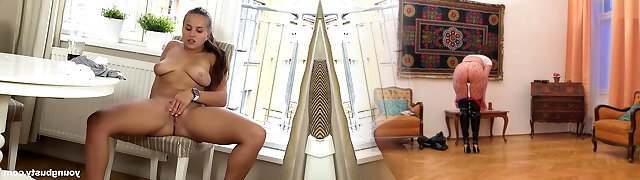 伟大的德国尤物与巨大的全天然壶具有喜悦与她的无毛fuckbox