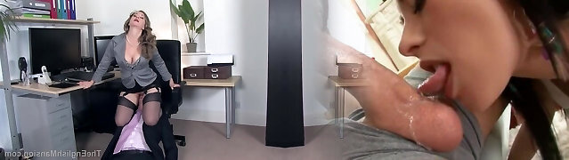 豪华秘书在缎面礼服,丝袜和高跟鞋办公桌性爱-projectfundiary