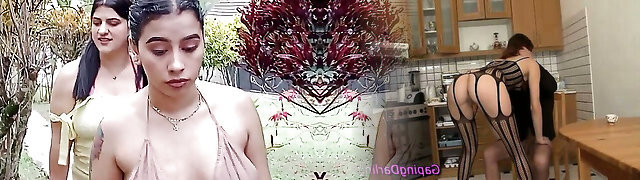 角质女同性恋者与大屁股利用家里独自舔他们的阴道在游泳池-色情在西班牙语