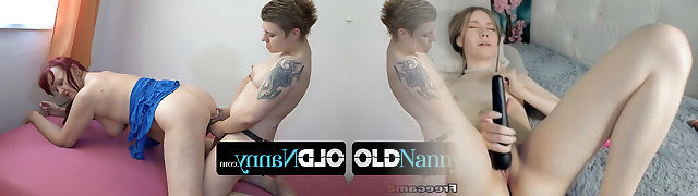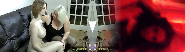 OLDNANNY热青少年女同性恋和成熟Starpon他妈的