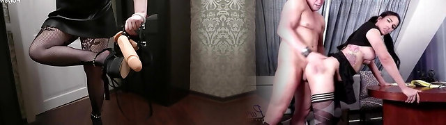 女性女神的妻子带在钉子顺从戴绿帽子的丈夫在贞操,同时采取Bbc Doggystyle