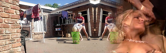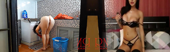 裸体主义者管家Regina Noir在洗衣房客房手淫。 1