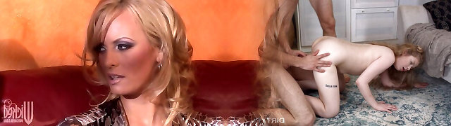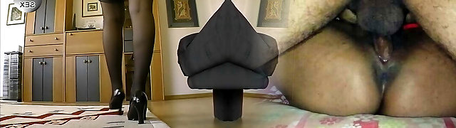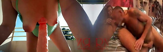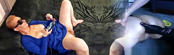 性感的金发女郎在乌木细高跟鞋犁她的莫夫与一个假阳具