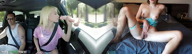 Svelte花痴基亚拉*科尔笔触与吸假阴茎在车里